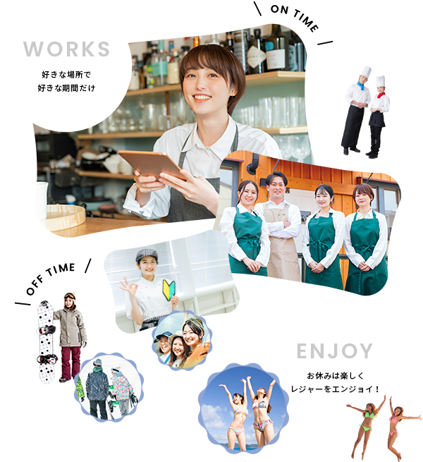 普通のアルバイトと違って、長期~短期まで期間を限定して自分の都合に合わせて、行きたいリゾート地で稼げる!