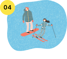 休日にはスキーやスノボを楽しんだり、
