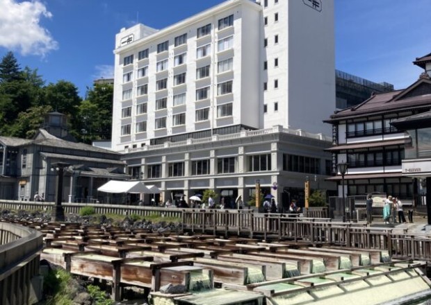 草津温泉のシンボル「湯畑」の目の前にある客室数も限定されたホテルです!